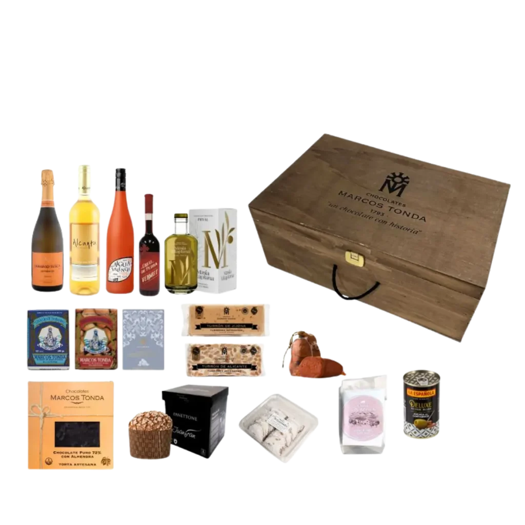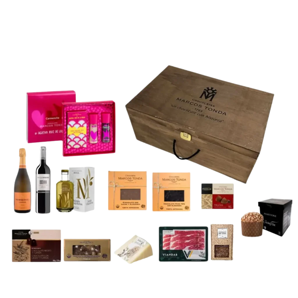 En Chocolates Marcos Tonda, elaboramos cestas y lotes de Navidad pensados para transmitir todo el sabor y la magia de estas fiestas. Seleccionamos cuidadosamente cada producto para garantizar la máxima calidad: desde nuestros chocolates artesanos hasta una cuidada variedad de especialidades gourmet, embutidos, quesos y bebidas que enriquecen cada propuesta.