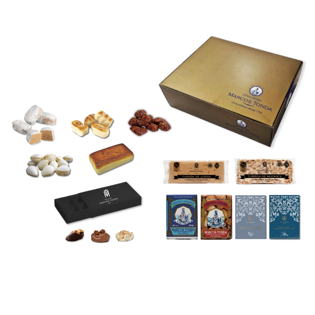 Nuestra Cesta de Navidad en Casa incluye una variedad de dulces que satisfarán todos los gustos y harán que tu celebración sea aún más especial. Desde chocolates artesanos hasta turrones tradicionales, cada uno de estos productos ha sido elegido por su calidad y sabor excepcionales, garantizando que cada momento sea indulgente y memorable.