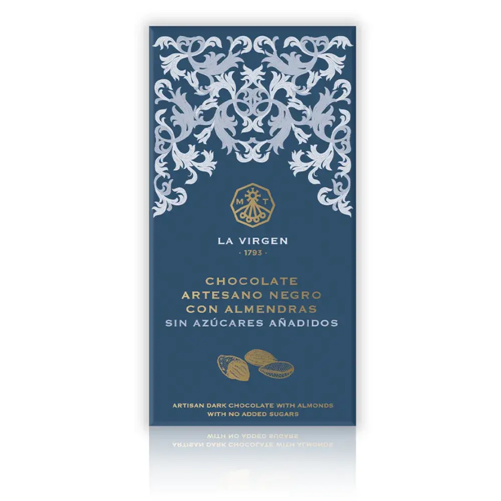 Chocolate Artesano Negro con Almendras Sin Azúcar, Colección La Virgen