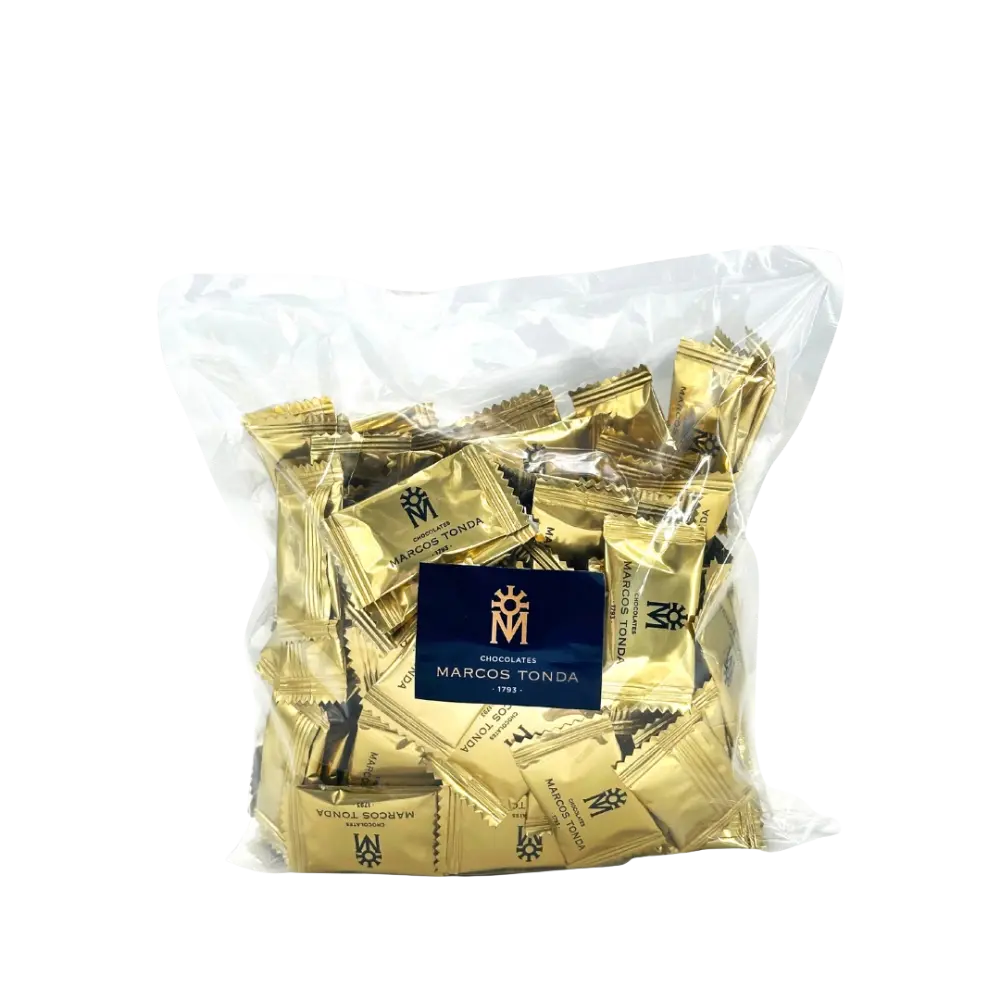 Presentadas en una bolsa de 500 g, contiene chocolatinas envueltas individualmente para garantizar su frescura. Son ideales para hoteles, cafeterías, restaurantes, oficinas, regalos corporativos, eventos o celebraciones, así como para tener siempre a mano un bocado de chocolate de calidad.